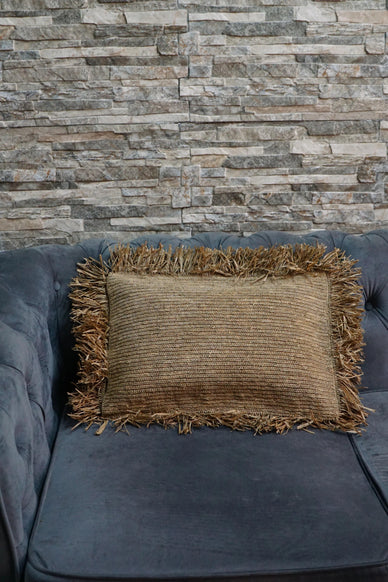 Oblong rectangular raffia cushion