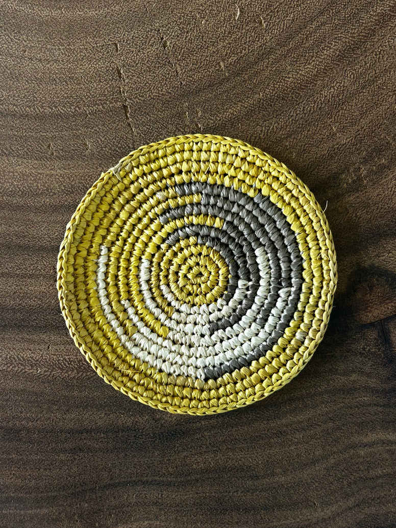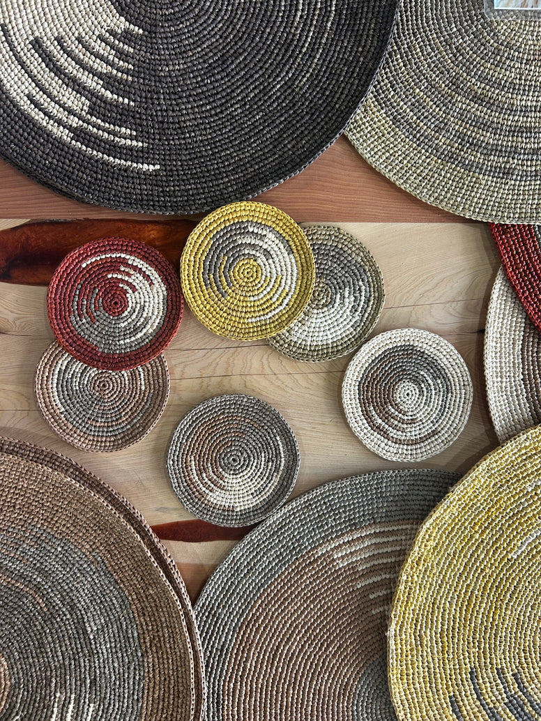 Complete your table decoration with our 100% natural raffia coasters , perfectly matching our "Vision" placemat . Crocheted entirely by hand, these coasters combine aesthetics and durability, while respecting the environment.