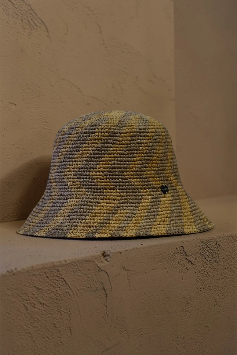 Ce bob en raphia fait main, bord 5 cm, apporte un look graphique et moderne. Confectionné par nos artisans, il est léger, souple et confortable pour un usage quotidien. Chaque motif est unique.