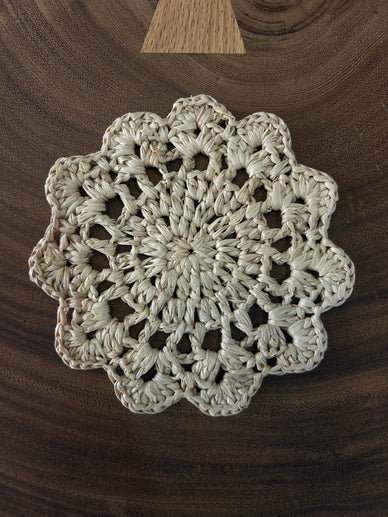 Avec son tressage brut et sa texture marquée, le sous-verre Irta apporte du caractère à votre table. Crocheté à la main avec du raphia naturel, il accompagne idéalement le set de table Irta pour une décoration rustique et élégante.