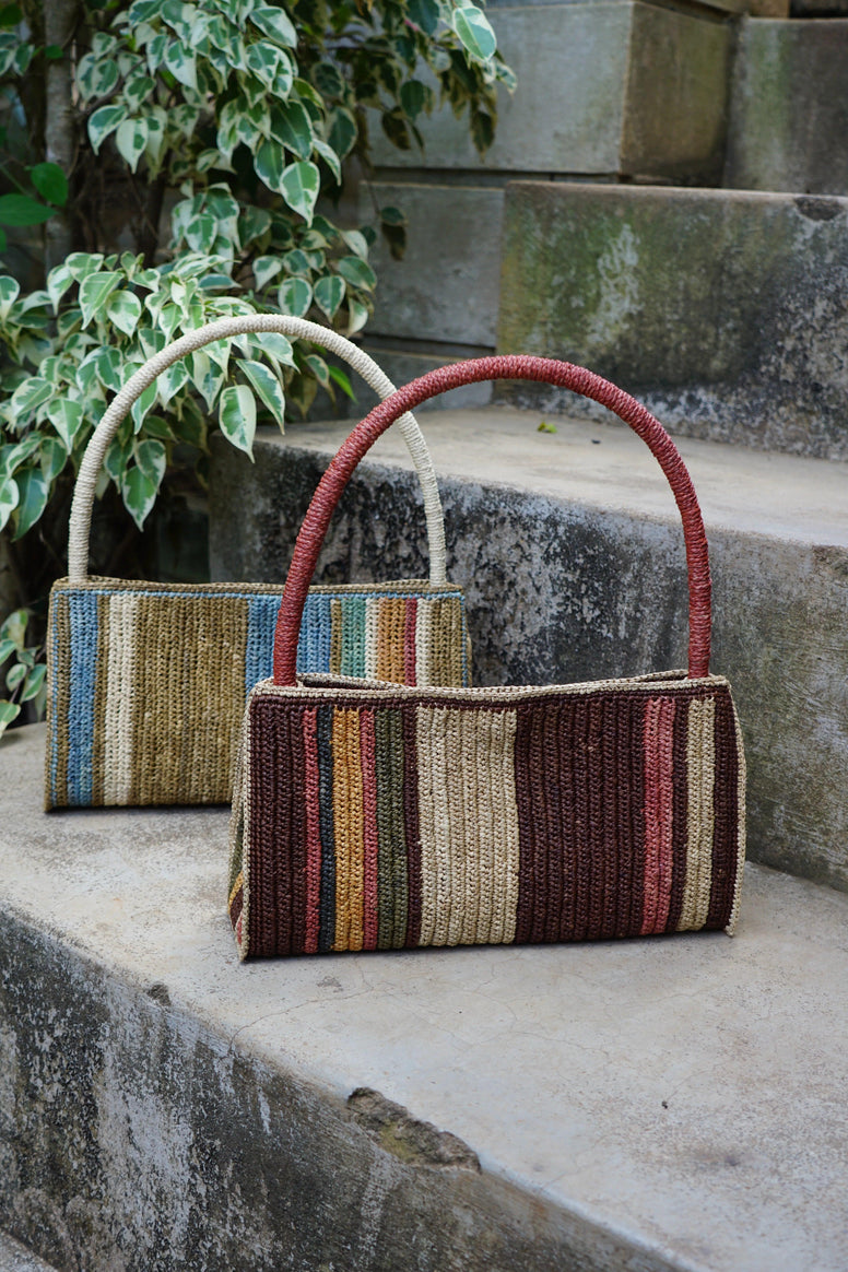 Les couleurs de votre sac ne s’effacent pas, mais gagnent en caractère en s’adoucissant avec les années. C’est ce qui fait toute sa beauté. Pour préserver l’éclat de votre sac en raphia, évitez une exposition prolongée à l’eau et aux rayons directs du soleil. Un nettoyage doux avec un chiffon sec ou légèrement humide est recommandé pour préserver les couleurs naturelles.